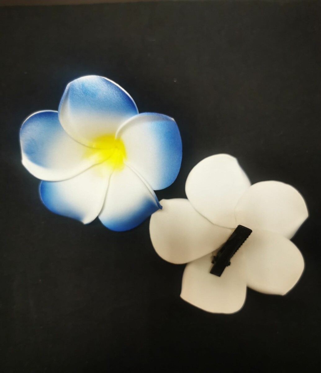 Une pince de fleur de tipanie en mousse, idéale pour accessoiriser une coiffure en y mettant une touche de couleur des îles.